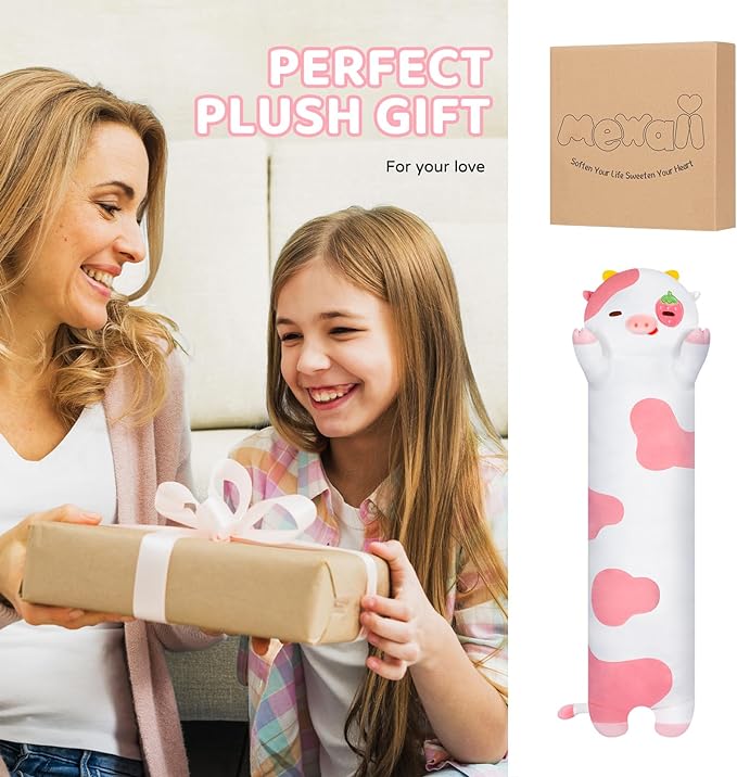 - Cow Body Pillow:Mewaii strawberry cow plush pillows use squishy fabric, soft cotton, fine embroidery and the best stitching to offer you the best cuddling sense and help you feel comforted after stressful days at work or study.