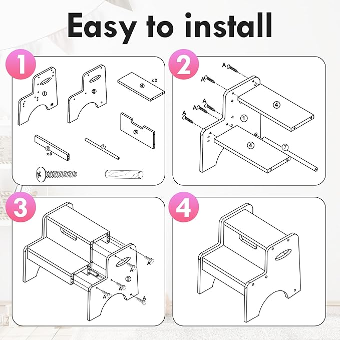 - 【Effortless Assembly】Putting together your new step stool is a breeze. With our detailed picture instructions, you can have it assembled in just 5-10 minutes using a screwdriver. The pieces fit perfectly into grooves, ensuring a secure and accurate setup every time.