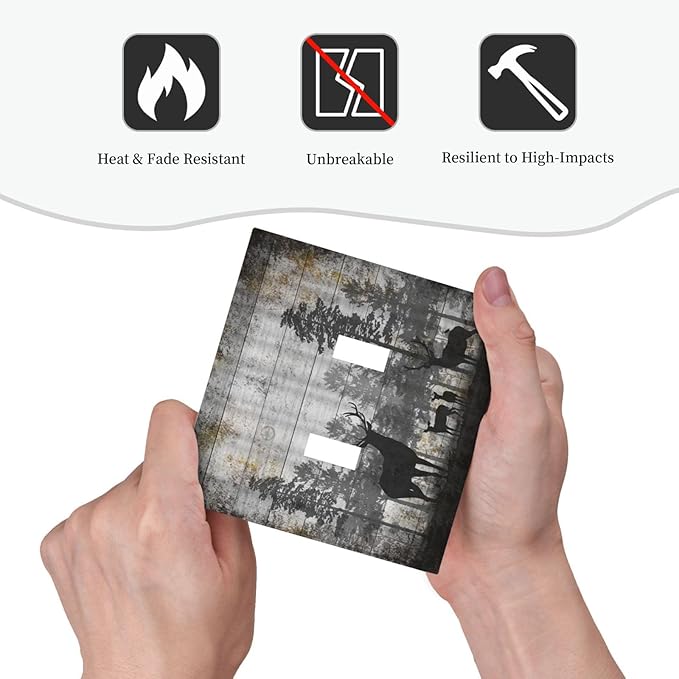 Rustic Deer Forest Vintage Wood Board Double Toggle Boho Light Switch Covers Decorative Country Unique 2 Gang Wall Plate Dual Electrical Faceplate Switchplate for Farmhouse Cabin Decor