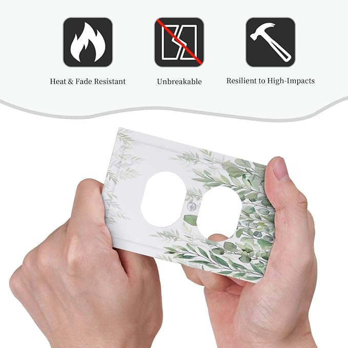 Green Eucalyptus Rustic Botanical Plant Leaves Single Duplex Wall Plate Covers Boho Light Switch Cover 1 Gang Outlet Plate Decorative Electrical Receptacle Faceplate Switchplate for Country Decor