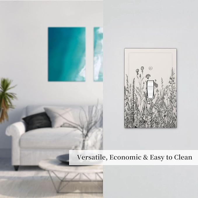 Vintage Grey Floral Herbs Wild Flowers Botanical 1 Gang Boho Light Switch Covers Decorative Country Single Toggle Wall Plate Switchcover Electrical Switchplate for Bedroom Decor
