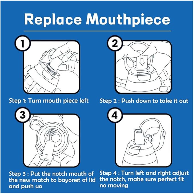 - Easy Installation: The water bottle filter & mouthpiece replacement is designed to fit for brita filter water bottle perfectly . Three steps: Step 1: Flush it under tap water for about 20Sï¼›Step 2: Insert the filter in the strawï¼›Step 3: push the mouthpiece,make sure to align the small square part up with the same on the cap,reattach with brita water bottle filter and you are good to go
