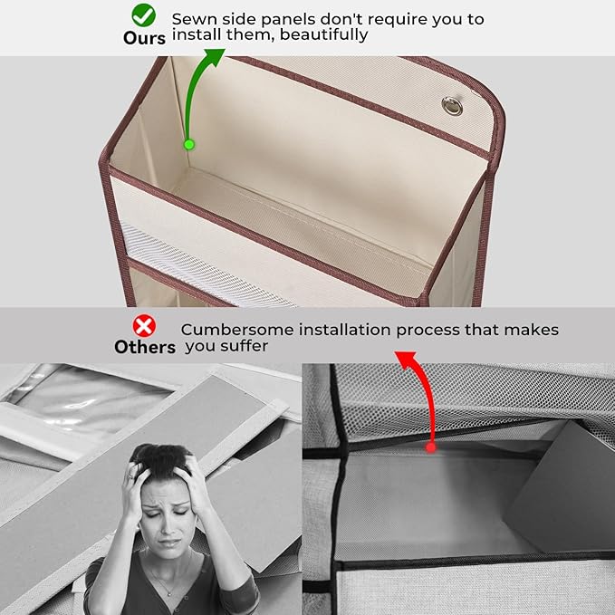 - 💓Assemble in 10 seconds & CLEAR WINDOW: The closet organizer and storage require no tools. Our bathroom organizers and storage come with pre-inserted pockets, place the cardboard in the bottom of the bin and enjoy easy organization and storage. There are visible windows on each pocket so you can see exactly what's inside, keeping an eye on the contents and staying on top of the refills, meaning the behind the door organizer won't block your view while still providing quick and easy access to essentials.