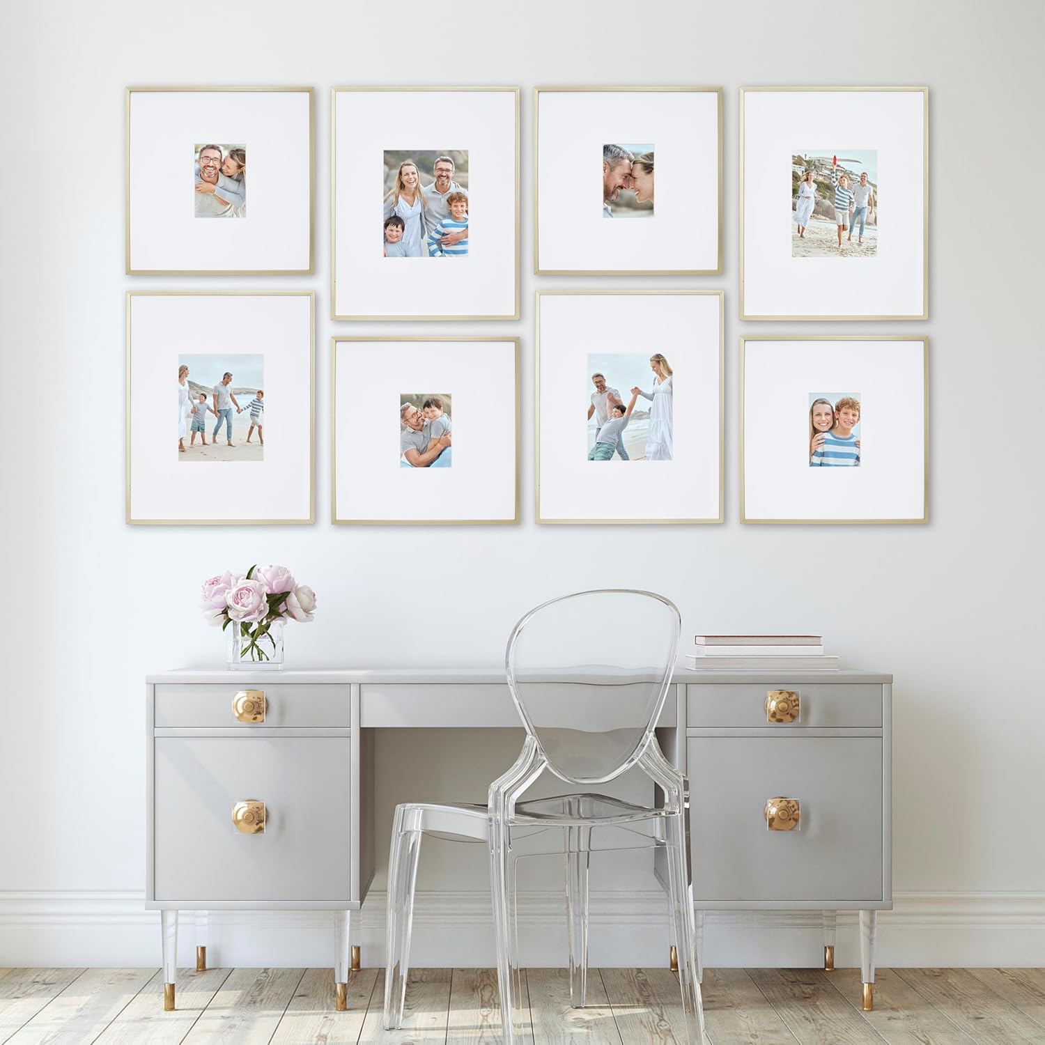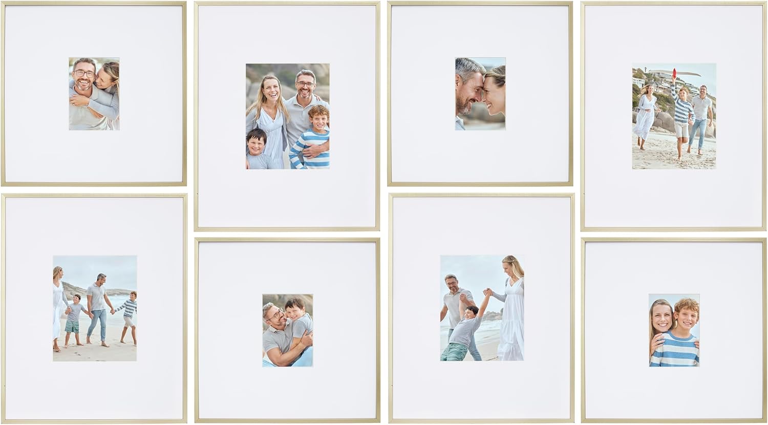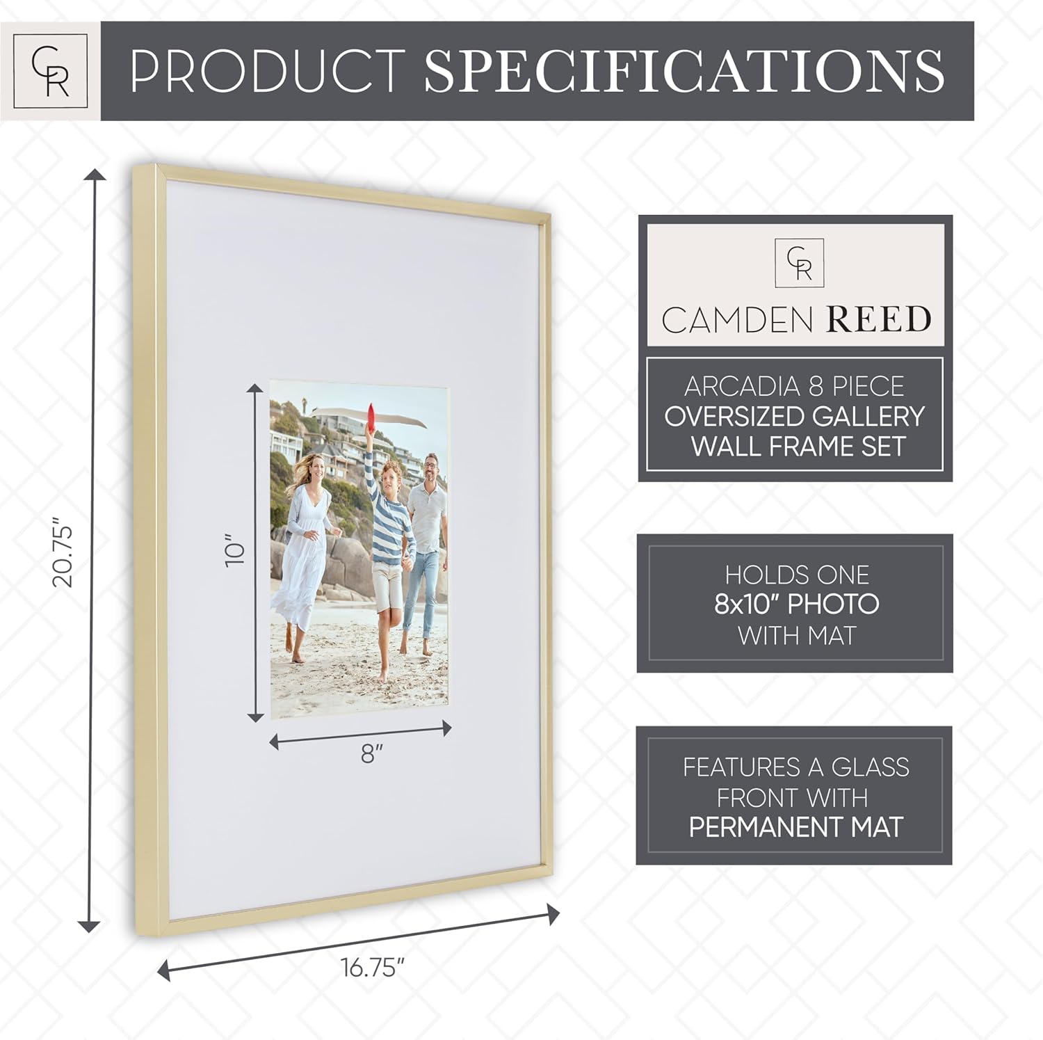 Camden Reed Arcadia 8 Piece Oversized Gallery Wall Frame, 16x20 and 16x16 Inch Matted Frames for Featuring 8x10 and 5x7 Inch Photographs or Art Prints, Gold Finish