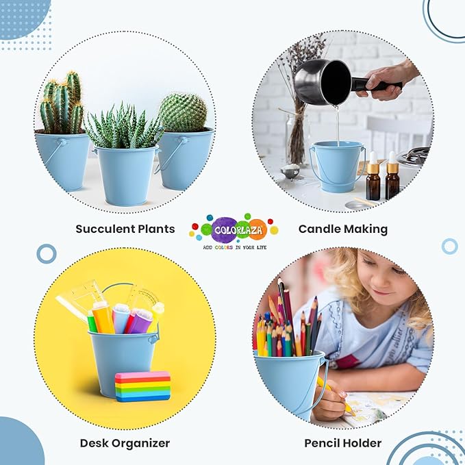 - 【Practical & Functional】Tin bucket offer versatile uses for hanging, carrying, and storing various items such as pencil, crayons, paintbrush, or candies. Small buckets convenient size and strong wire handles are a sturdier and more long-lasting alternative to plastic buckets