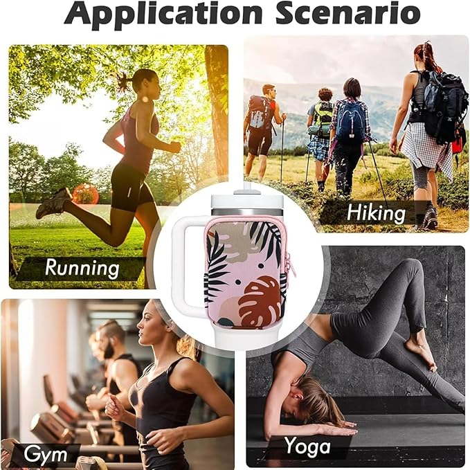 Water Bottle Pouch for Stanley Quencher 40Oz with Straw Covers, Compatible with Stanley,Straw Cover for Stanley,Tumbler Accessories Workout, Pink