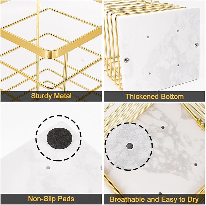 - Premium Marble Based: Our utensil holder Thickened marble base, stable and anti-tipping. Drainage holes in the bottom design, prevention of mold, easy to clean. The Non-slip mats protect the countertop from scratches