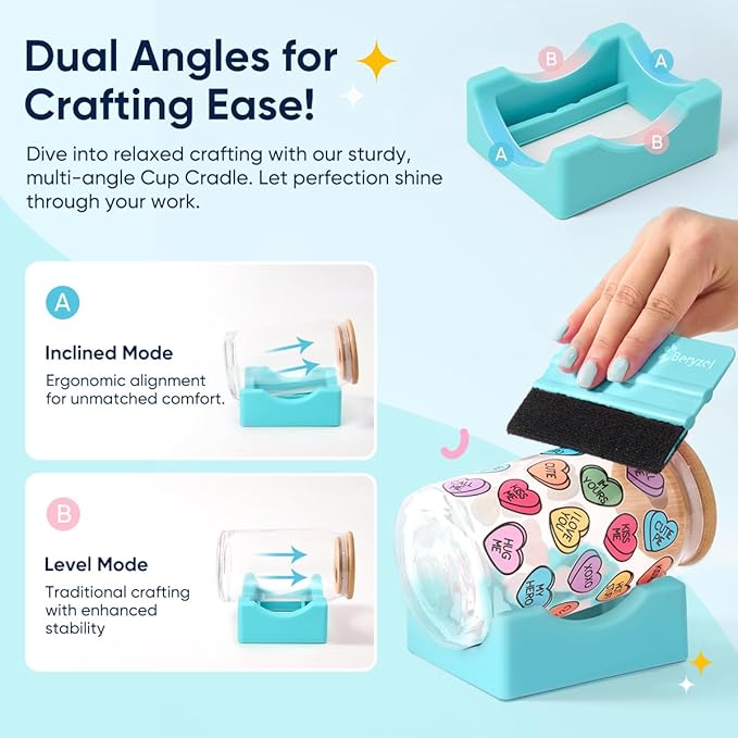 - Special Design: Different from traditional cup cradle, this silicone one comes with 2 angle modes. Level mode and inclined mode, intimately create for makers with different habbit. Perfect position to place tumblers on during UVDTF cup wraps / Vinyl Decals application, meet all your decal needs!