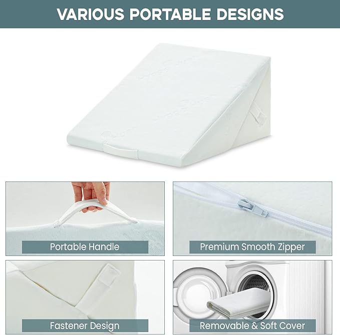 - EASY TO STORE AND CLEAN: A foldable design allows you to store the triangle pillow anywhere without taking up much space, has a handle to carry while on travel, and a removable soft and breathable cover, unzip the zipper, it's easily removable and machine washable.
