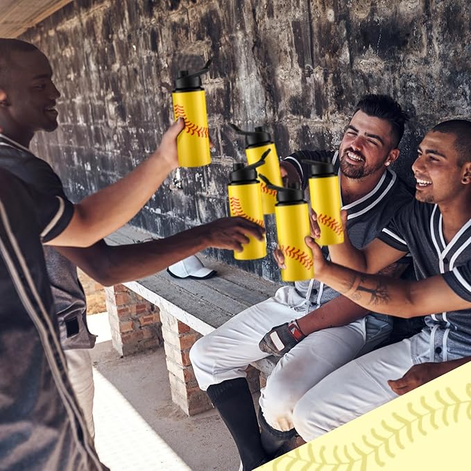 Layhit 134 Pcs Party Favors Set Include Cosmetic Bag Drawstring Backpack Hair Ties Charm Bracelets Silicon Bracelets Water Bottles Keychains Stickers for Sport Team Gifts (Yellow,Baseball)