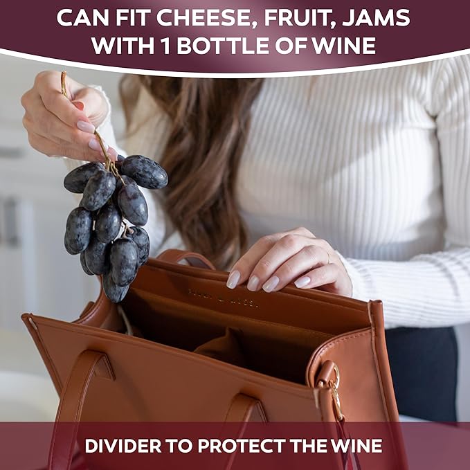 - It's Sleek, Chic, and Totally Unique: This PU tote leather wine bag blends practicality with unparalleled panache; You'll make a statement when you stroll into a get-together or restaurant with this wine carrier tote; And it's versatile - doubling as a purse, grocery bag, or picnic bag
