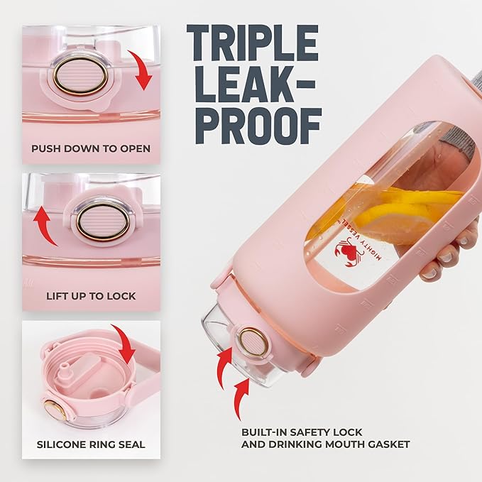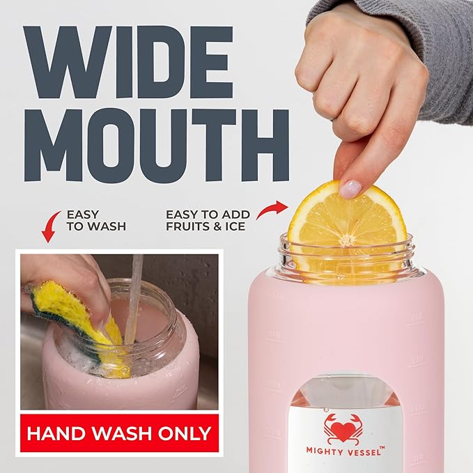 - {Unique Design} - While others are offering casual designs, our half gallon water bottle is made up of high quality glass. Clear water bottle transparent nature allows you to easily monitor your water intake, ensuring you stay on track with your hydration goals.