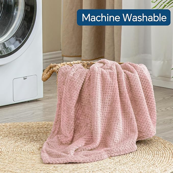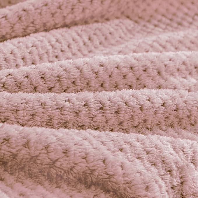 BEDELITE Travel Blanket and Pillow Set, Portable and Packable Jacquard Travel Blanket Airplane Compact with Bag, Airplane Blanket Travel Essentials for Women with Luggage Sleeve & Backpack Clip, Pink