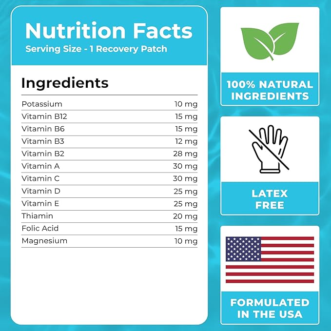 - 🍹 Safe & Natural - Our Patches Are Formulated in the USA and Use 100% Natural Ingredients. The Patches Bypass the Digestive System Utilizing Transdermal Delivery, Ensuring Your Stomach Won’t Get Upset.