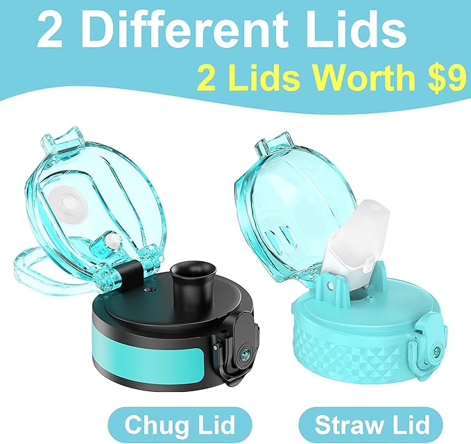- LEAK-PROOF & DUSTPROOF: As long as the tab is in the locked position, the lid is completely leak-proof. You can rest assured that the kids water bottles won't accidentally open and cause any leaks, even when placed in a backpack. Additionally, the lid cover helps keep the bite valve clean.