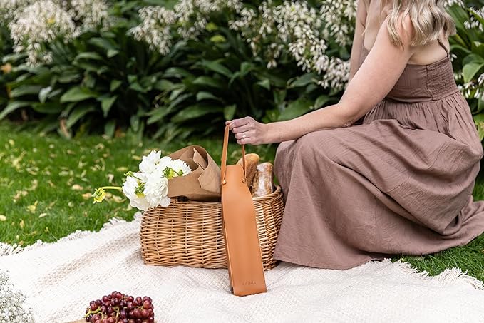 NEW Salute Wine Bottle Carrier with Corkscrew | Vegan Leather Tote Gift Bag Corporate Gift idea Picnic Travel Tastings Wine Gift Beach Party BYOB Restaurant Valentines Day (Tan)