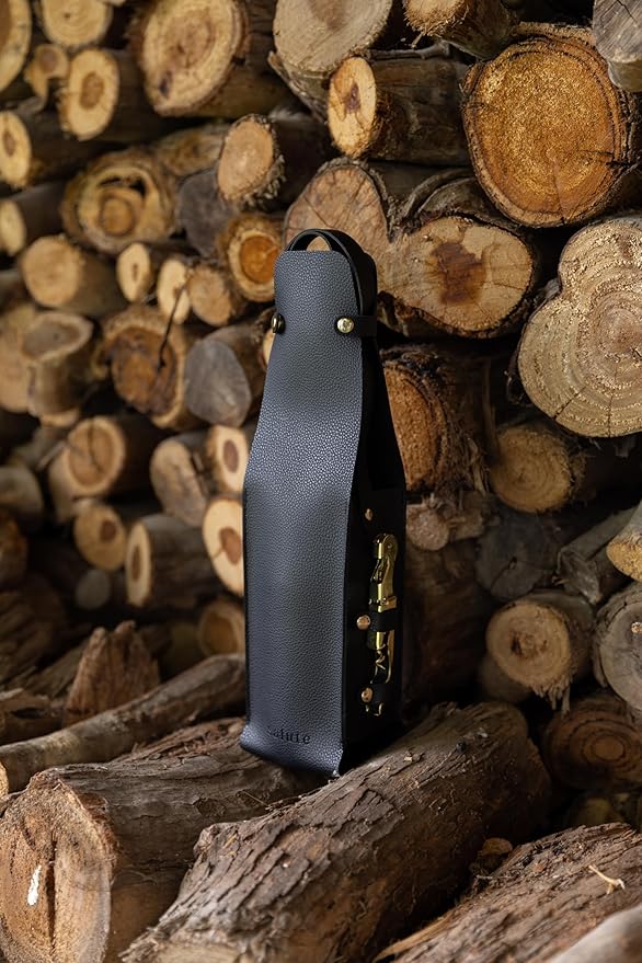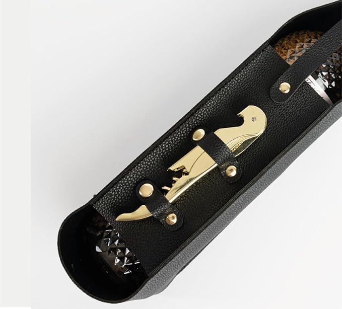 - Our beautifully crafted vegan Leather Wine Bottle Carriers are lightweight, durable and compact. They come with our signature gold corkscrew opener.