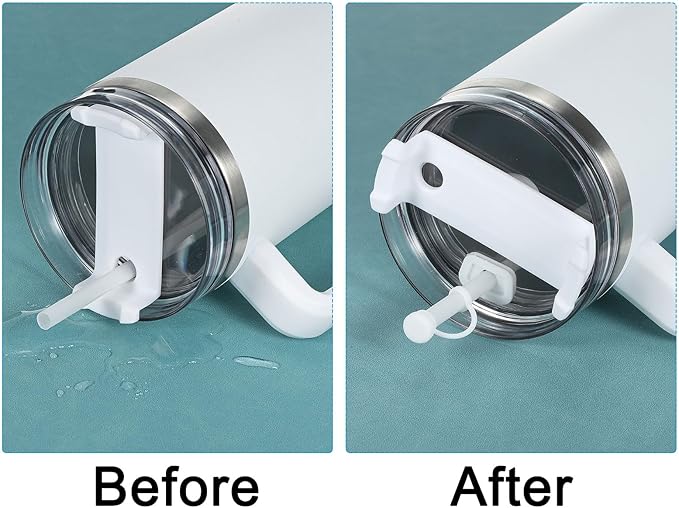 • Advantage: The spill stopper is made of silicone material, which is flexible, durable and convenient to clean. The straw cap can prevent water from spilling out of the straw and keep dust out. The round stopper is installed on the inner side of the cup lid, featuring a cross-shaped opening design that ensures sealing while allowing air to enter for easy drinking. The square stopper is installed on the outer side of the cup lid, securing the straw in place and forming a seal to prevent leak.