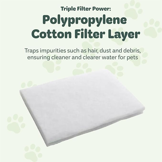 - Triple Action Replacement Filter. Polypropylene cotton traps impurities, activated carbon absorbs contaminants, and ion exchange resin removes scale, to keep your cat and dog water clean and healthy