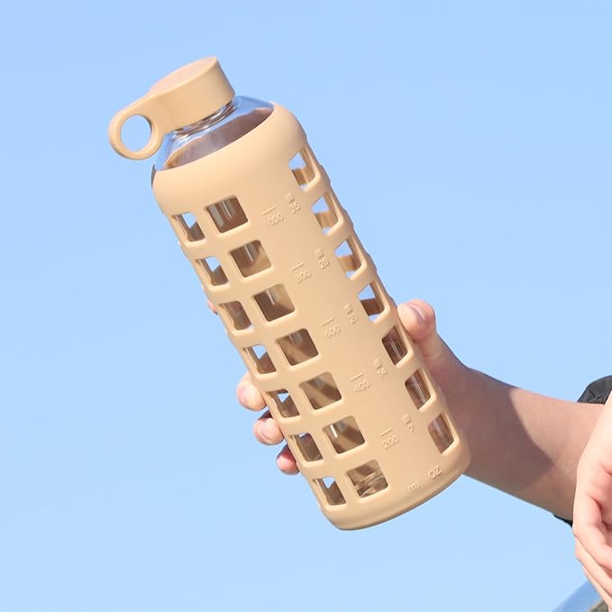 - Stylish and Functional: Add style to your hydration routine with our glass bottles featuring a vibrant, durable silicone sleeve and lid. Choose from a variety of colors to match your personal style while enjoying the added benefits of impact protection and a secure grip.