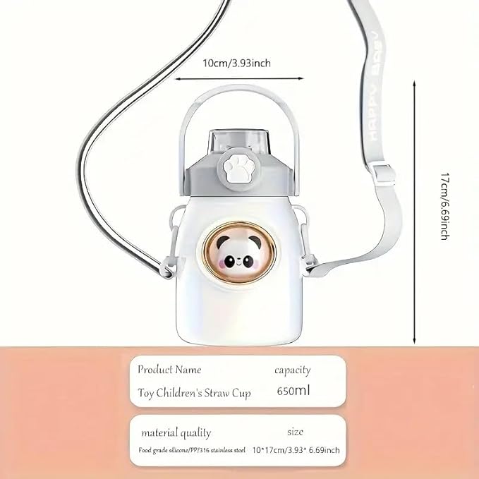 Cute Water Bottle with Strap and Straw 22oz Aesthetic Kawaii Water Bottles BPA-free Leak-proof Insulated Water Bottles for Girls Sports Travel(Blue)