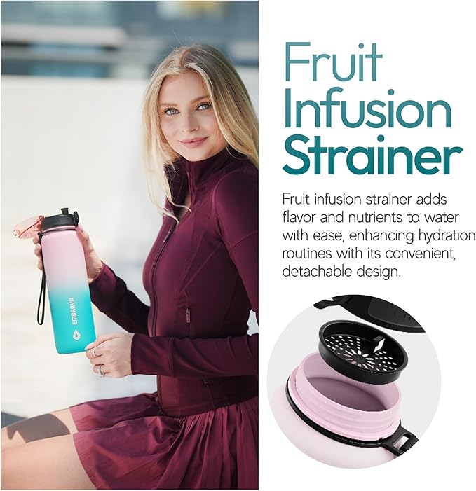 - π 2024 REVAMPED DESIGN - Experience the modern twist on hydration with Embrava's latest 32oz Sports Water Bottle. Boasting shock-resistant, BPA & BPS-free Tritan plastic in two vibrant new colors, transcends the ordinary - for men & women. Ideal for fitness enthusiasts and outdoor adventurers. Best for the gym, hiking, yoga and daily life, ensuring you stay hydrated in every setting.
