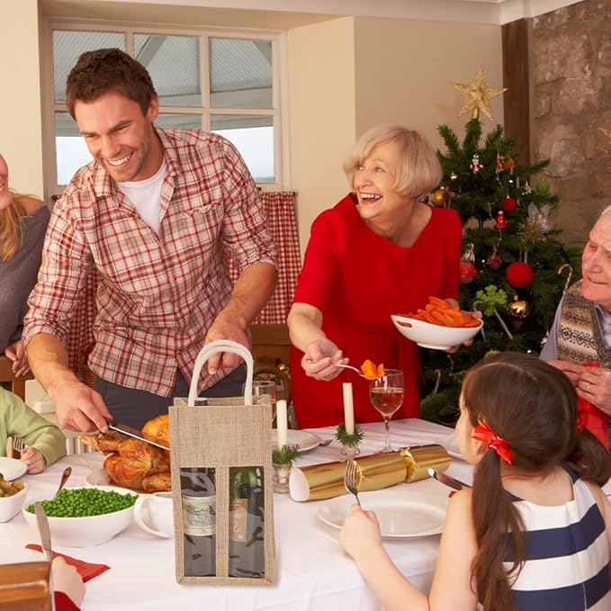 - Built-in compartment -- The jute bag is set up with a divider cloth to ensure that the wine bottle is placed smoothly, which can effectively prevent the two bottles or fragile items put inside from colliding and breaking.