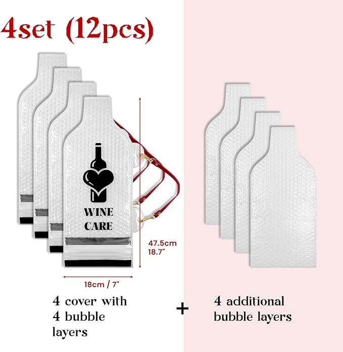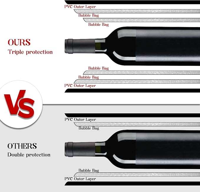 - 【Reusable】Each wine travel bag include 2 double layers bubble bags which can be used multiple times. You'll have enough protectors for your daily replace. Suit for suitcases, cars, airplanes, and cruise ships