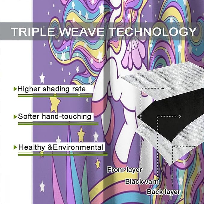 Unicorn Curtains Fantasy Star Moon Cartoon Theme Curtains Cute White Unicorn Rainbow Design Printed Curtains Boys Girls Room Curtains 63x72 Inch 2 Panels