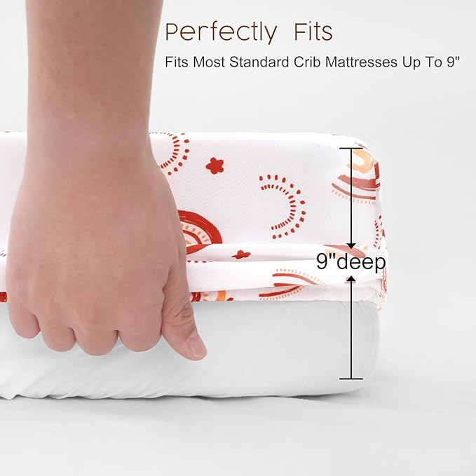 - Perfectly Fit: Measuring 28 by 52 inches with 9 inches deep pocket, our crib sheets can perfectly fit standard crib mattress or toddler mattress up to 9 inches. No worry about too loose fit or bunching up the mattress. A whole strong elastic band at the bottom help keep the sheet stay flat right in place securely and snugly to create a safe and comfortable sleep environment for babies.