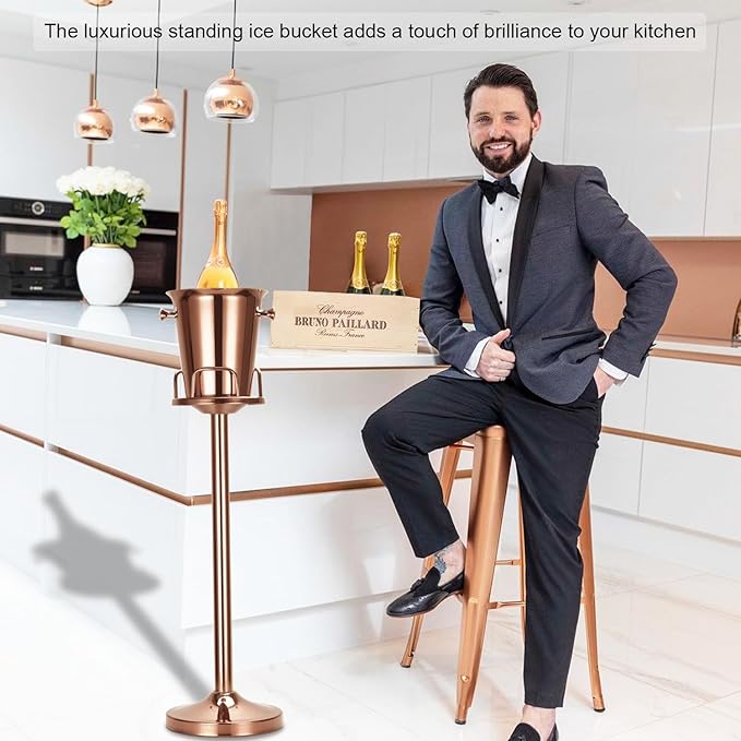 Champagne Bucket with Stand,Ice Bucket with Stand Stainless Steel Bucket Wine Chiller On Stand 12Lb Hammered Tall Ice Bucket Stand for Party Bar Ktv Bbq Home,3ft (rose gold, 1 pack)