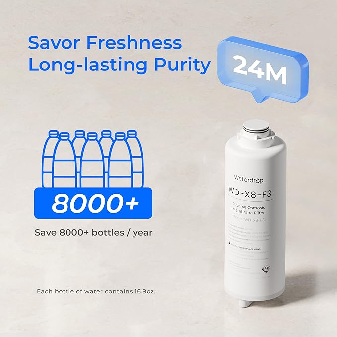 Waterdrop WD-X8-F3 Filter, Only Replacement for WD-X8 800 GPD Reverse Osmosis System, 24-month Lifetime, Reduce PFAS