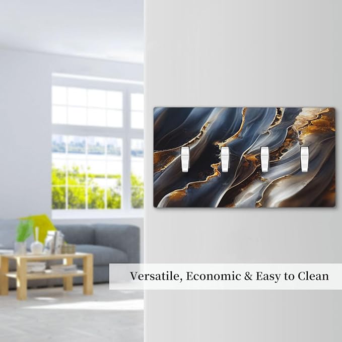 Gradient Abstract Ripple Blue Gold Marble Printed Quad Toggle Light Switch Covers 4 Gang Wall Plate Decorative Switchplate Electrical Faceplate for Kitchen Bathroom Bedroom Decor