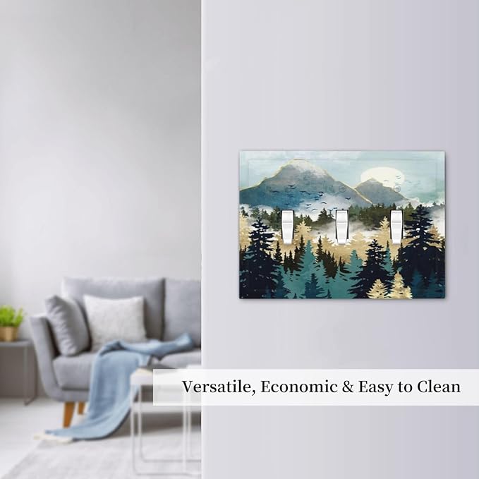 Boho Mountain Forest Abstract Sunset Sunrise Sun 3 Gang Light Switch Covers Triple Toggle Wall Plate Decorative Switchplate Electrical Faceplate for Country Bathroom Bedroom Decor