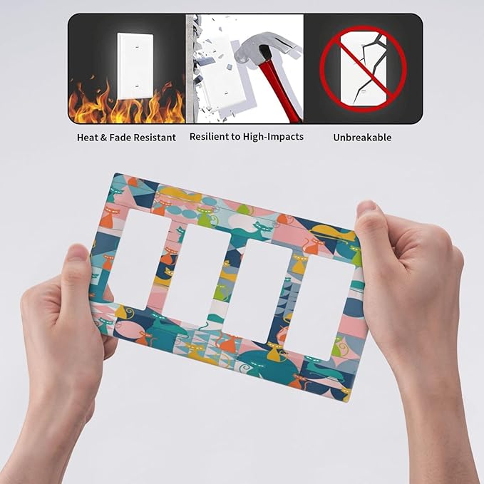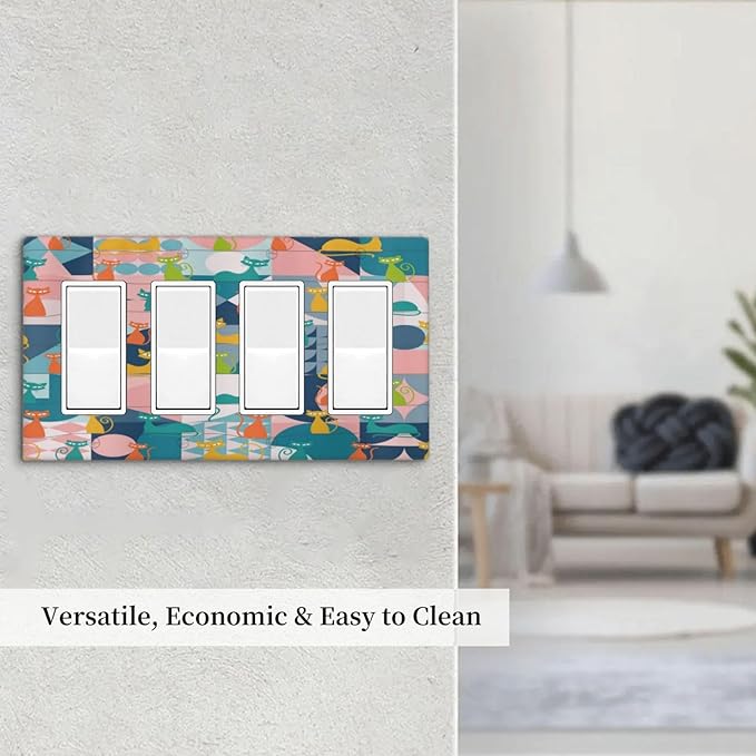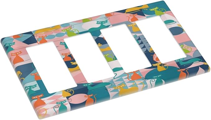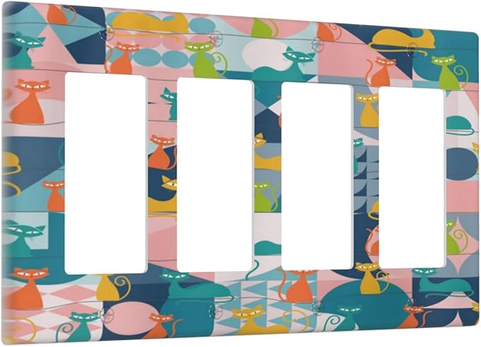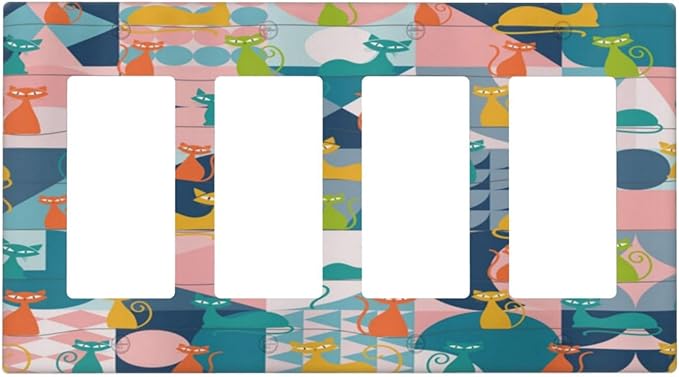 Mid Century Modern Atomic Cute Cats 4 Gang Rocker Decora Light Switch Cover Outlet Covers Wall Plate Decorative Switchplate Electrical Faceplate GFCI for Kidroom Nursery Bedroom Decor