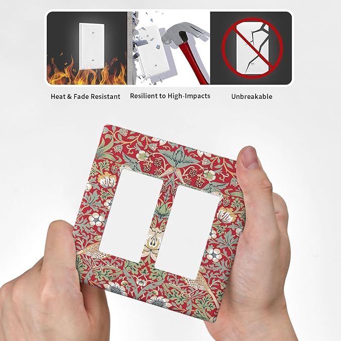 William Morris Strawberry Thief Botanical Red Green 2 Gang Rocker Decora Light Switch Covers Dual Outlet Covers Wall Plate Decorative Switchplate Electrical Faceplate GFCI for Country Bedroom