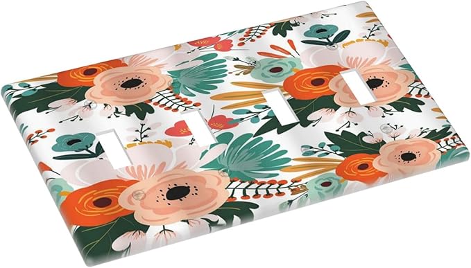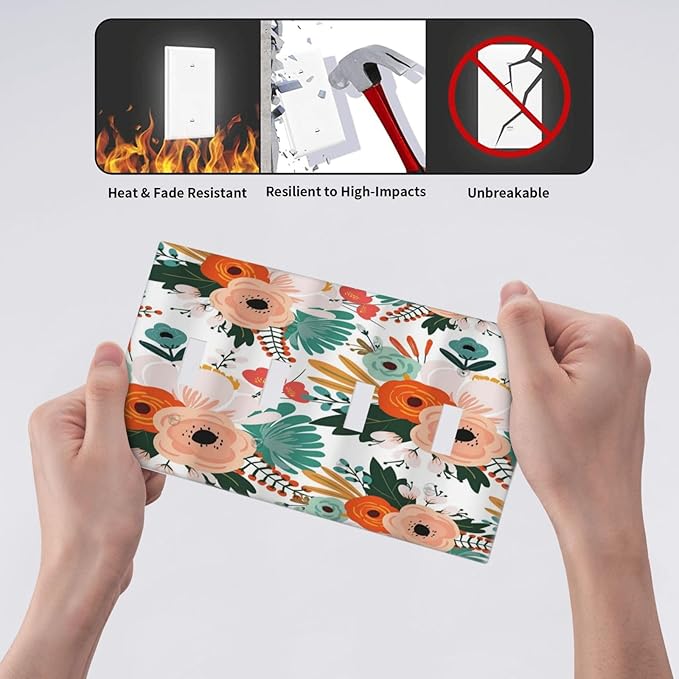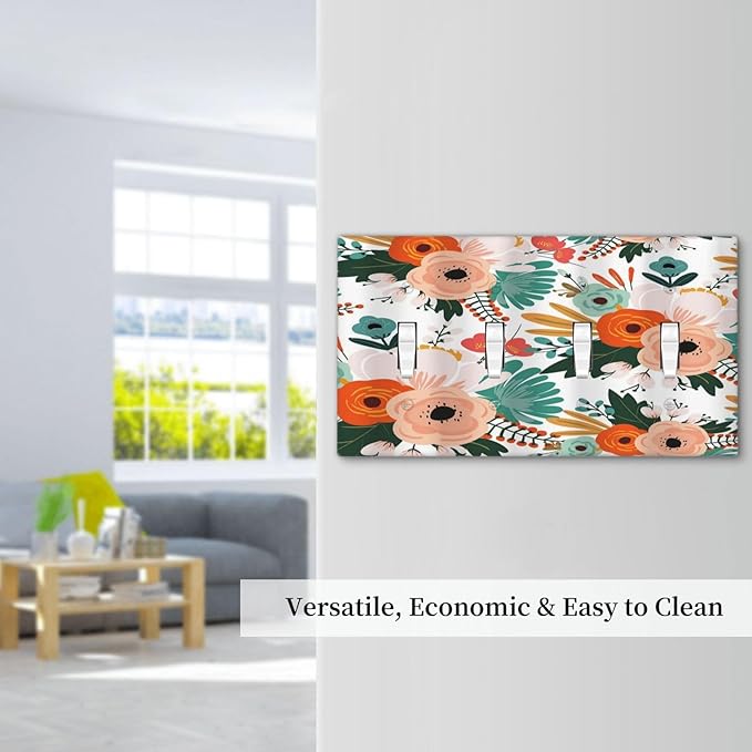 Rustic Floral Boho Colorful Flower Quad Toggle Light Switch Covers 4 Gang Wall Plate Decorative Switchplate Electrical Faceplate for Farmhouse Bathroom Bedroom Kitchen Decor