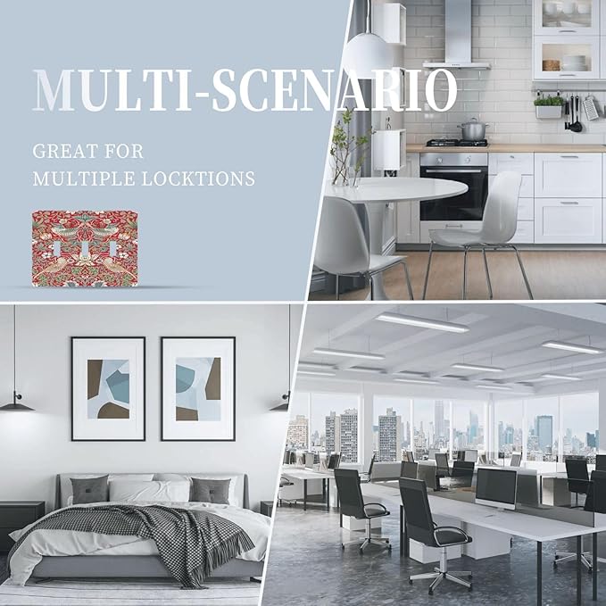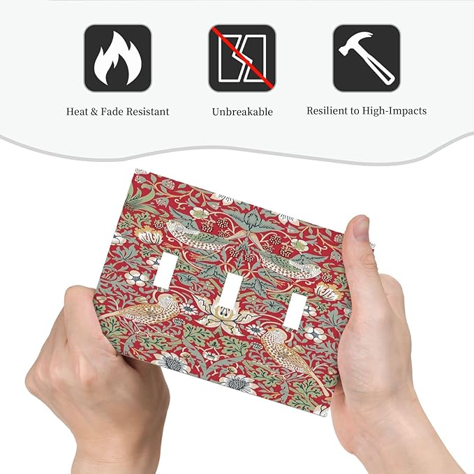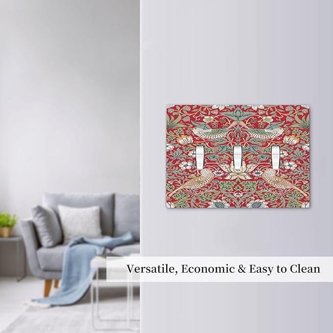 William Morris Strawberry Thief Botanical Red Green 3 Gang Light Switch Covers Triple Toggle Wall Plate Decorative Switchplate Electrical Faceplate for Country Bathroom Bedroom Kitchen Decor