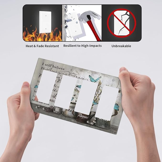 Blue Butterfly Rustic Flower Inspirational Quotes 4 Gang Rocker Decora Light Switch Cover Outlet Covers Wall Plate Decorative Switchplate Electrical Faceplate GFCI for Farmhouse Bedroom Decor