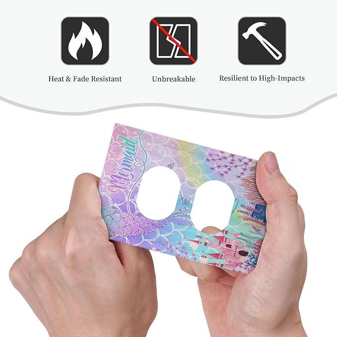 Silvery Glitter Cute Mermaid Tail Fantasy Castle Single Duplex Wall Plate Covers Light Switch Cover 1 Gang Outlet Plate Decorative Switchplate Covers Electrical Faceplate for Kidroom Nursery Decor