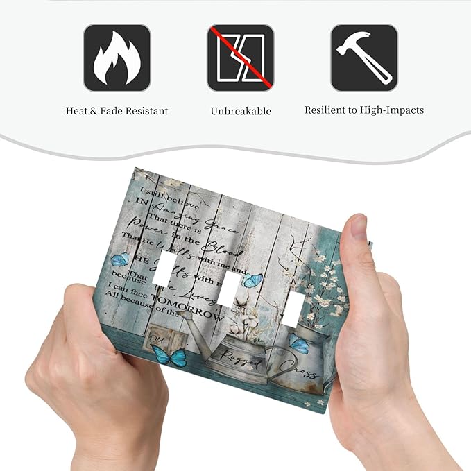 Vintage Teal Butterfly Inspirational Quotes Wood Plank 3 Gang Light Switch Covers Triple Toggle Wall Plate Decorative Switchplate Electrical Faceplate for Farmhouse Country Bedroom Kitchen Decor