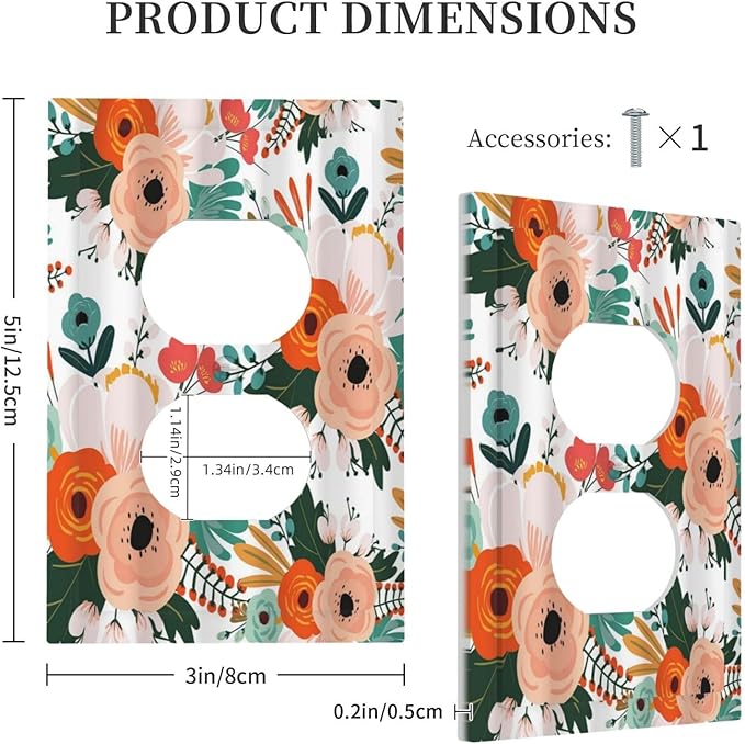 Rustic Floral Boho Colorful Flower Single Duplex Wall Plate Covers Light Switch Cover 1 Gang Outlet Plate Decorative Switchplate Covers Electrical Faceplate for Farmhouse Bathroom Bedroom Kitchen