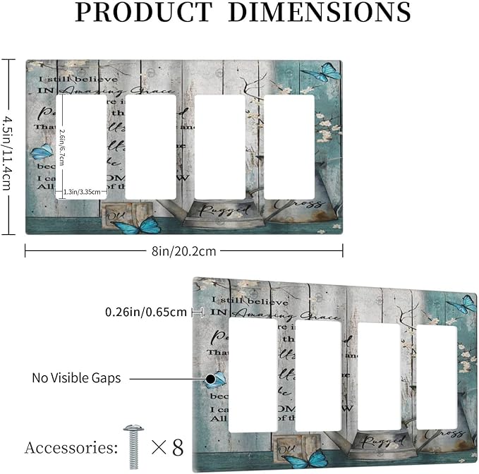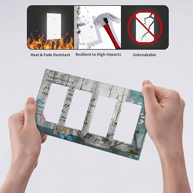 Vintage Teal Butterfly Inspirational Quotes Wood Plank 4 Gang Rocker Decora Light Switch Cover Outlet Covers Wall Plate Decorative Switchplate Electrical Faceplate GFCI for Farmhouse Bedroom Decor