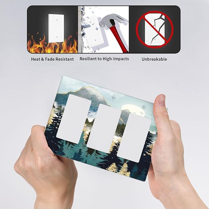 Boho Mountain Forest Abstract Sunset Sunrise Sun 3 Gang Rocker Light Switch Covers Triple Outlet Wall Plate Decorative Switchplate Cover Faceplate GFCI for Country Bathroom Bedroom Decor