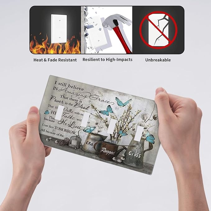 Blue Butterfly Rustic Flower Inspirational Quotes Quad Toggle Light Switch Covers 4 Gang Wall Plate Decorative Switchplate Electrical Faceplate for Farmhouse Country Bedroom Kitchen Decor