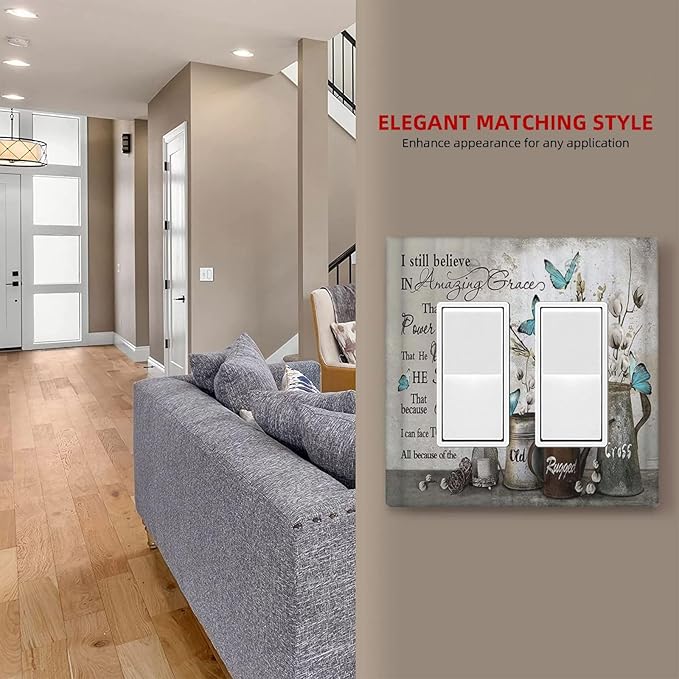 Blue Butterfly Rustic Flower Inspirational Quotes 2 Gang Rocker Decora Light Switch Covers Dual Outlet Covers Wall Plate Decorative Switchplate Electrical Faceplate GFCI for Country Bedroom Decor