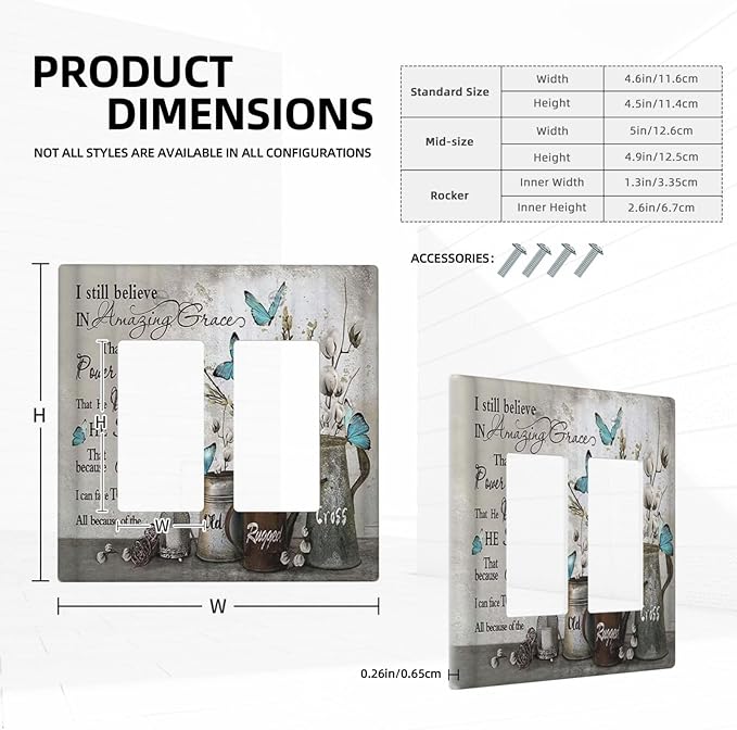 - 【Easy to Install】This wall plate includes matching screws. The standard size is easy to install on the wall grid, covering more wall imperfections, which makes them easy to decorate any standard light switch and socket.