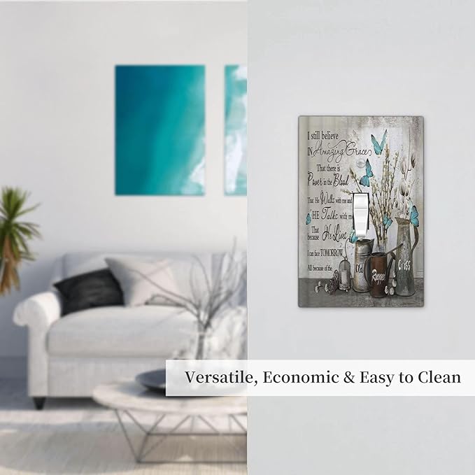 Blue Butterfly Rustic Flower Inspirational Quotes 1 Gang Light Switch Covers Single Toggle Wall Plate Decorative Switchcover Electrical Switchplate for Farmhouse Country Bedroom Kitchen Decor