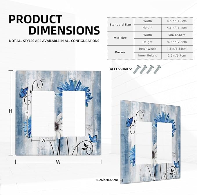 - 【Easy to Install】This wall plate includes matching screws. The standard size is easy to install on the wall grid, covering more wall imperfections, which makes them easy to decorate any standard light switch and socket.