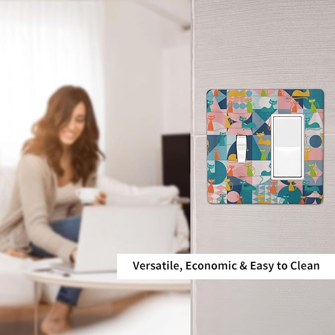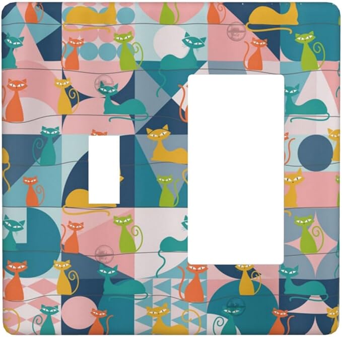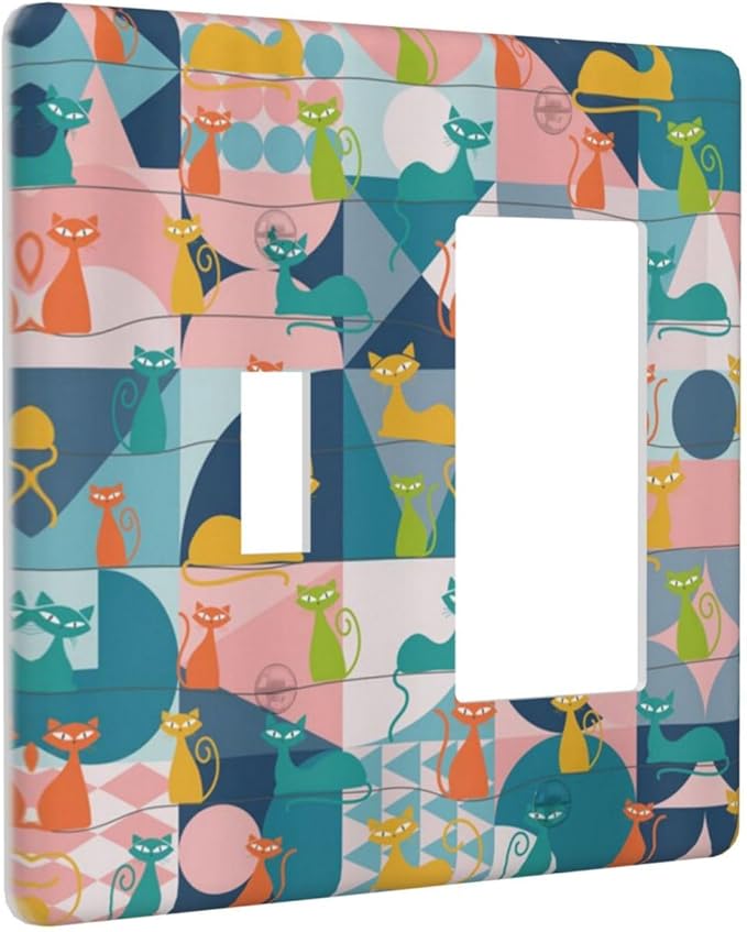 Mid Century Modern Atomic Cute Cats 2 Gang Single Toggle Rocker Combination Light Switch Covers Wall Plate Cover Electrical Faceplate Decorative Switchplate for Kidroom Nursery Bedroom Decor